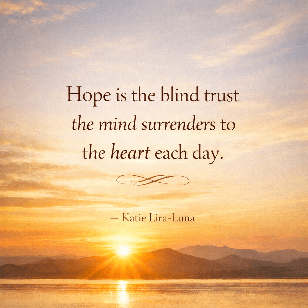 If this life has taught me anything, it’s to always have hope. To me, hope is the blind trust the mind surrenders to the heart each day. We must never let go of hope.